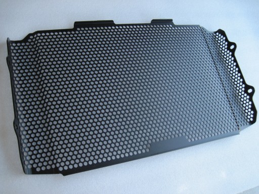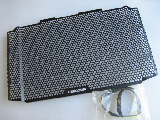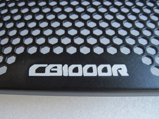 Sklep Fordmot oferuje na sprzedaż bardzo ładną,dużą,nową osłonę chłodnicy wykonaną z tłoczonego aluminium metodą CNC,waga tylko 297g.Osłona jest bardzo estetycznie i ładnie wykonana,stanowi jeden lity trwały element.Osłona jest ładnie wyprofilowana do kształtu chłodnicy,jest mocowana w czterech fabrycznych punktach po dwie śruby na każdy bok osłony.Nie ma konieczności stosowania opasek.Dołączona jest taśma dwustronna zapobiegająca ewentualnym obtarciom.Z racji dużego rozmiaru osłona chroni całą powierzchnię chłodnicy,posiada na środku logo CB1000R.