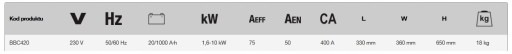 - Moc rozruchowa BBC420: 400 amperów korby przy 12V