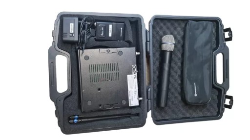 Dane techniczne:Pasma częstotliwości: 506-530, 668-692, 774-798, 790-814, 841-865 MHzModulacja: FMMoc nadajnika: 20mWSystem kompandera: NE572Stosunek sygnał/szum: >110dBZniekształcenia: <0.5% @ 1kHzPasmo przenoszenia: 50Hz - 18kHzWzmocnienie wejściowe: 10mV - 0.3V, regulowaneZasilanie: 2 x 1.5V AACzas pracy: >20 godzinWymiary: 110 x 63 x 21.5mmWaga: 145g