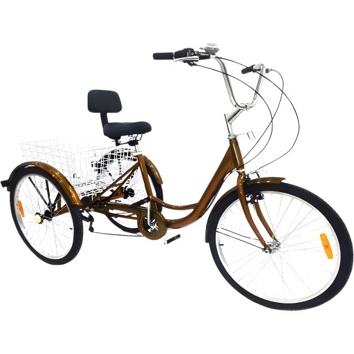 ВЕЛОСИПЕД ДЛЯ ВЗРОСЛЫХ ТРАЙК 24 ДЮЙМА ЗОЛОТОЙ С КОРЗИНОЙ
