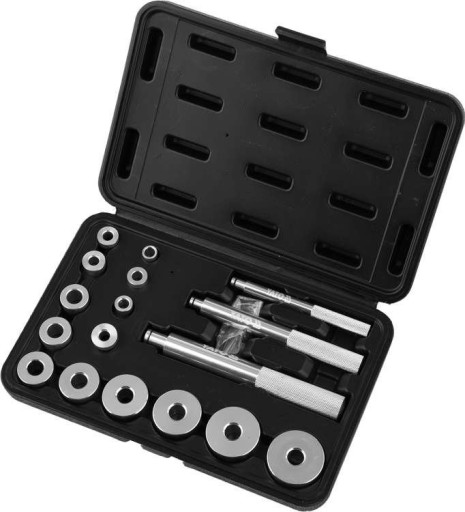 Zestaw stosowany do równoosiowego montażu łożysk, pierścieni, uszczelniaczy, tulei i wałków tocznych. Pasuje do większości modeli samochodów osobowych.
