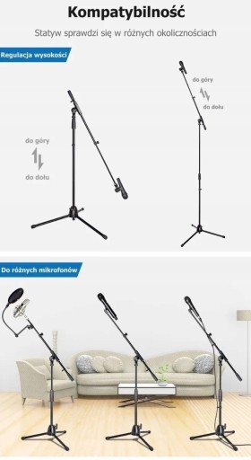 Statyw mikrofonowy łamany SSQ MS1 to statyw który jest kompatybilny z różnego typu mikrofonami: