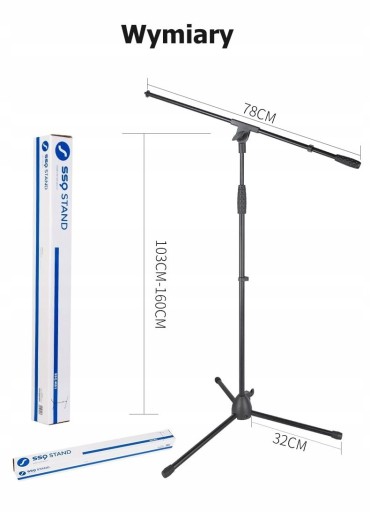 Wymiary:Długość nogi podstawy32cmRegulowana część stała103cm-160cmDługość ramienia78cmMateriał wykonaniaStal malowana proszkowoŁączeniaWytrzymałe tworzywoWymiary transportowe8cm x 8cm x 93cmWaga1,8kg