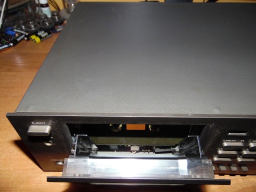 Typical front loading cassette deck with the cassette compartiment located on the left side of the deck. Tape eject is operated mechanically and the cassette needs to be placed with the side to be played facing forward in the cassette well.
