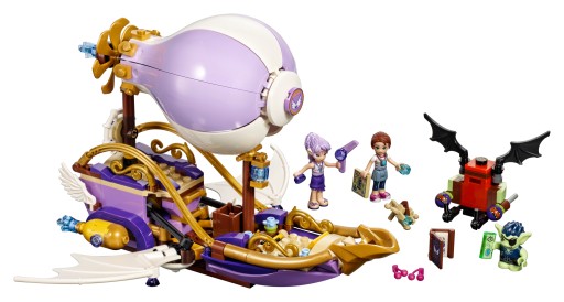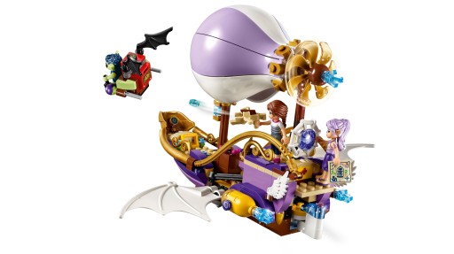 Nowe, ekscytujące przygody w Elvendale! Dołącz do Emily Jones i elfki wiatru Aira Wiatrogwizd, które wyruszają na poszukiwanie skradzionego amuletu i Sophie Jones, siostry Emily. Masz ochotę na lot sterowcem Airy? Ten pojazd ma obracające się śmigło, miejsce na dwie minilaleczki, rozkładane skrzydła oraz kuszę. Nie daj się złapać Dukelinowi Goblinowi, który będzie Cię ścigać na pokładzie szybowca o rozkładanych skrzydłach i strzelać ziarnami zła! Szybowiec ma też niewielki luk ukryty pod otwieraną klapką. W zestawie dwie minilaleczki i goblin.