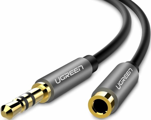 Przedłużacz marki Ugreen do kabla audio AUX 3,5 mm mini jack 1m. Kabel audio, ze złączemżeńskim i męskim 3,5 mm mini jack, przedłużacz audio, który świetnie sprawdzi się do wydłużenia np. kabla słuchawkowego. Za jego pomocą masz możliwość wygodnego słuchania muzyki na swoich ulubionych słuchawkach, nawet kiedy twój telefon, tablet lub odtwarzacz muzyczny leży z dala od Ciebie. Wtyczki przewodu są wykonane z cynkowanej miedzi i pokryte 24 karatowym złotem. Taka konstrukcja gwarantuje, że dźwięk będzie pełny i nieskazitelny. Muzykę możesz odtwarzać z dowolnego urządzenia, wyposażonego w złącze 3,5 mm mini jack. Cały kabel jest wykonany z wysokiej jakości materiałów. Zapewnia mu to lepszą odporność na drobne uszkodzenia, złamania i zerwania. Możesz dzięki niemu słuchać muzyki będą w dalszej odległości np. od komputera lub telefonu.0