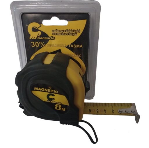 Szybkie i płynne zwijanie oraz rozwijanie taśmy sprawia, że praca z miarką jest efektywna i komfortowa. Wygodny klawisz blokady umożliwia zablokowanie taśmy na wybranej długości, co ułatwia samodzielne przeprowadzanie pomiarów. Magnes umieszczony na końcu taśmy ułatwia pomiary metalowych przedmiotów.