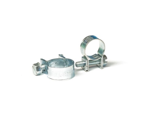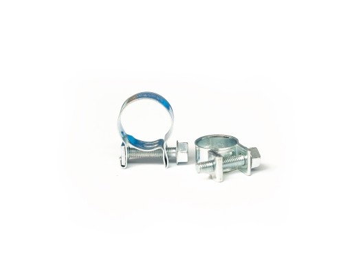 Zestaw ocynkowanych opasek zaciskowych mini skręcanych śrubą.