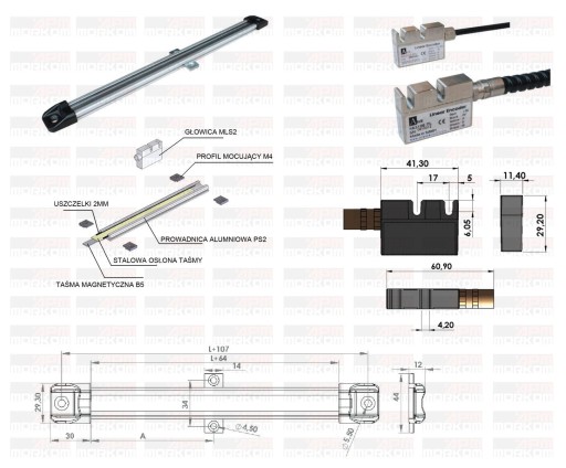 Magnetyczny enkoder liniowy serii MLS-2 PS (profil system) jest przeznaczony głównie do wykorzystywania na maszynach