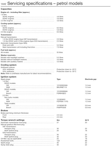 Does NOT cover models with 1.4 litre, 1.8 litre or 3.2 litre petrol engines.