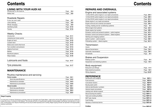 Typowy informator Haynes Publishing zawiera opis napraw, budowy i konserwacji samochodu Audi A3 II :