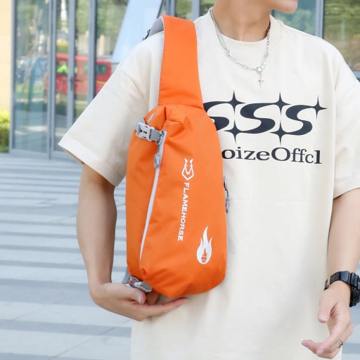 Нагрудная сумка из водонепроницаемого нейлона, оранжевого цвета.