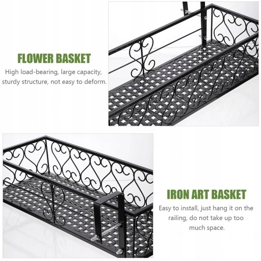 Ten wiszący stojak kwiaty jest specjalnie zaprojektowany do wisi ogrodzeniach. Mógł wytrzymać doniczkę wraz z glebą i sadzić w niej podczas zawieszenia go ogrodzenie. Wykonany z żelaza premium, jest on trwały przez długi czas używania.