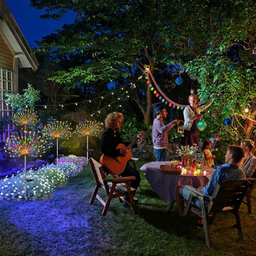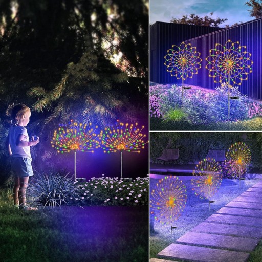 Słoneczne światło fajerwerków ma dwa tryby świecenia. Gdy przełącznik jest ustawiony na stronę ON, jest to tryb migania, przełącznik znajduje się w stanie OFF w środkowej pozycji, a pozycja OFF to tryb stałego światła. To kreatywny prezent dla przyjaciół lub sąsiadów na Boże Narodzenie, Halloween i Święto Dziękczynienia. To zewnętrzne oświetlenie dekoracyjne oświetli tarasy, klomby, ogrody, podwórka, ogrodzenia, chodniki i ścieżki itp.