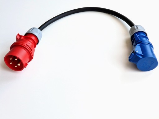 Przejściówka z wtyczki 16A 5P 400V na gniazdo 32A 3P 230V.