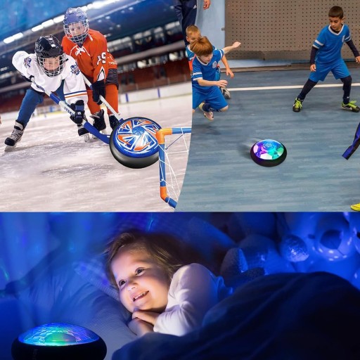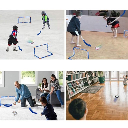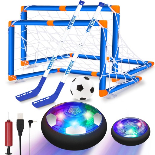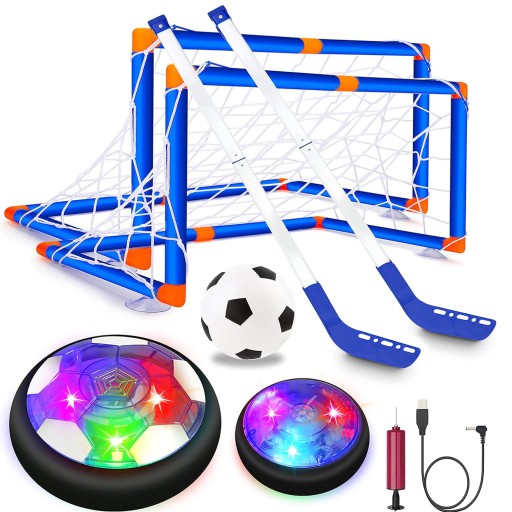 -Ten zestaw zawiera unoszącą się w powietrzu piłkę hokejową, unoszącą się w powietrzu piłkę nożną i nadmuchiwaną piłkę.