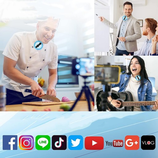 Zastosowanie Wielokierunkowy dźwięk: Bezprzewodowy mikrofon krawatowy do iPhone'a iPad. Mikrofon z klipsem nadaje się do Vloga, wywiadu, transmisji na żywo, YouTube, TikTok, podcastu, Instagrama, samouczka wideo online, Vloga i wykonanie śpiewu itp. (Uwaga: kabel do transmisji danych, jaki sposób służy do ładowania mikrofonu, a nie do zasilania, aby na koszt telefonu).