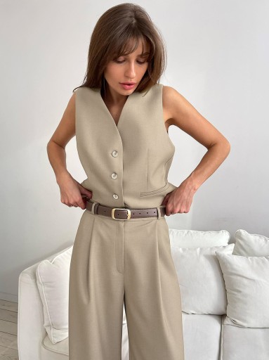 Nie trać czasu i dodaj ten niezwykły zestaw spodni i kamizelki do swojej letniej garderoby już dziś! Odkryj nową definicję elegancji i poczuj się pewnie w swoim stylu! 💖💃