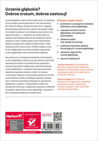 Uczenie głębokie zmienia oblicze wielu branż. Ta rewolucja już się zaczęła, jednak potencjał AI i sieci neuronowych jest znacznie większy. Korzystamy więc dziś z osiągnięć komputerowej analizy obrazu i języka naturalnego, wspierania badań naukowych czy budowania skutecznych strategii biznesowych - wchodzimy do świata, który do niedawna był dostępny głównie dla naukowców. W konsekwencji trudno o źródła wiedzy, które równocześnie byłyby przystępne dla zwykłych programistów i miały wysoką wartość merytoryczną. Problem polega na tym, że bez dogłębnego zrozumienia działania algorytmów uczenia głębokiego trudno tworzyć dobre aplikacje.