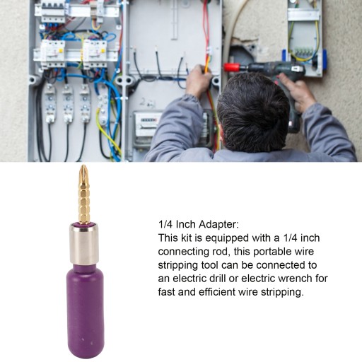 2. Adapter 1/4 cala: Zestaw ten jest wyposażony w korbowód 1/4 cala. To przenośne narzędzie do ściągania izolacji można podączyć do wiertarki elektrycznej lub klucza elektrycznego w celu szybkiego i wydajnego ściągania izolacji.