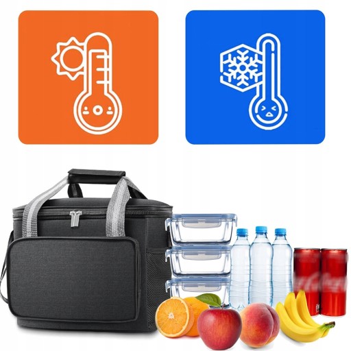 - Torba termoizolacyjna jest wyposażona w potrójną izolację, dzięki czemu jedzenie pozostaje gorące przez 4-6 godzin, a zimne przez 6-8 godzin.