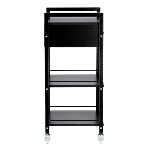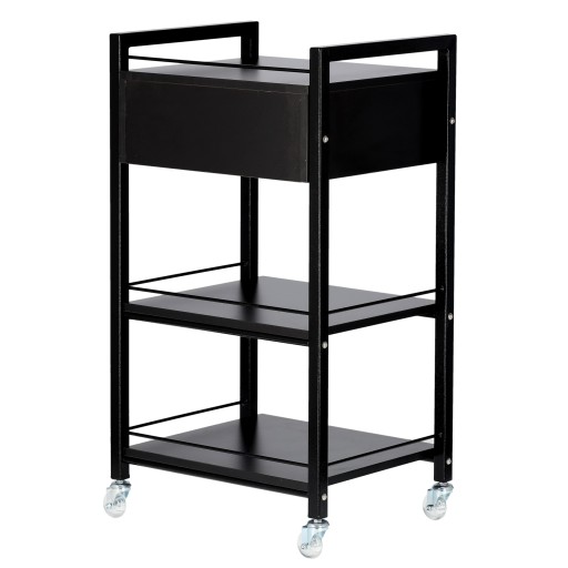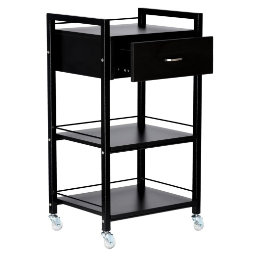 Jest ergonomiczny, pozwala na zaoszczędzenie czasu i miejsca w salonie. Dodatkowo, zamontowane kółka, na pewno przyczynią się do poprawy komfortu pracy.