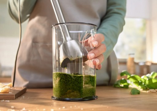 Czy często miksujesz małe ilości? Dzięki praktycznemu pojemnikowi łatwo odmierzysz składniki i zmiksujesz małe ilości bezpośrednio w pojemniku. Oszczędność czasu gwarantowana.