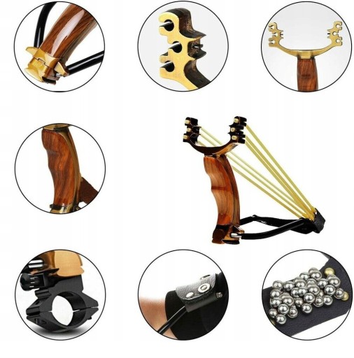 - [Dokładne strzelanie]: Regulowana podpórka pod nadgarstek i proca ze złotymi proporcjami, składana proca, łatwa w użyciu i wygodna do przenoszenia, z uchwytem na latarkę laserową, pozwala na dokładne polowanie nawet w nocy.
