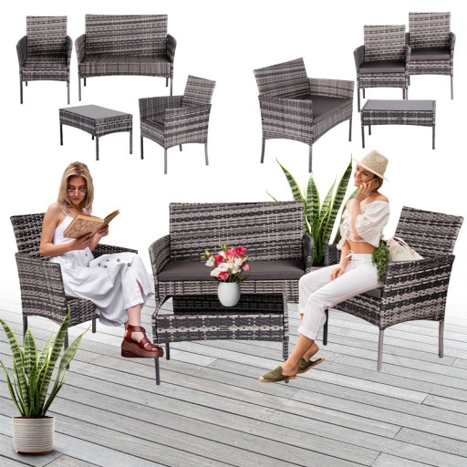 ZESTAW MEBLI OGRODOWYCH RATTANOWE LUIZA 4 OSOBOWE SZARY