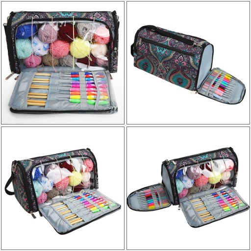 Jest przestronna główna przestrzeń do przechowywania piłki, stałe otwory na pierścień ustalający, utrzymuj linię oddzieloną, unikaj splątania, ustaw małą torbę z boku, używaną do instalowania narzędzi szydełkowych.