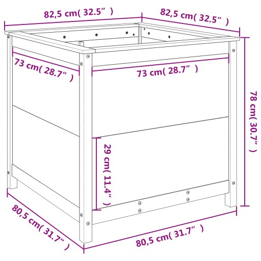 vidaXL Donica ogrodowa, 82,5x82,5x78 cm, lite drewno daglezjowe 825308 8720845810443