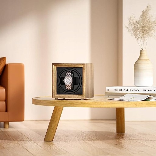 Rotomat jest wykonany z czarnego drewna orzecha włoskiego, a dookoła krawędzie są nieskazitelnie zmontowane. Jest to dobre rękodzieło, które może dobrze udekorować Twój dom i nadaje się na stoliki nocne, toaletki, półki i stoliki kawowe. Nie tylko nakręca zegarek, ale może również zaprezentować fajny mechaniczny zegarek.