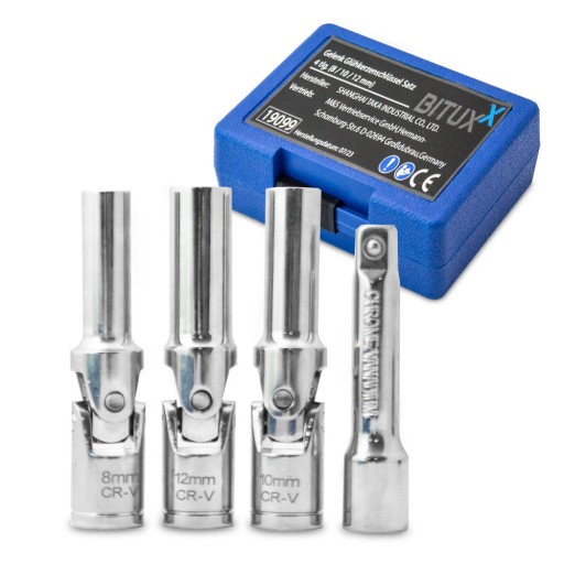 Dzięki zestawowi kluczy do świec żarowych Bituxx możesz łatwo i bezpiecznie wymienić świece żarowe w swoim pojeździe. Trzy klucze (8-10-12 mm) mają przegub, dzięki czemu można dotrzeć do świec żarowych, nawet jeśli jest mało miejsca. Dzięki dołączonej przedłużce 75 mm nakrętki wykonane są ze stali chromowo-wanadowej. Dzięki praktycznemu schowkowi narzędzia są zawsze przejrzyste i pod ręką.