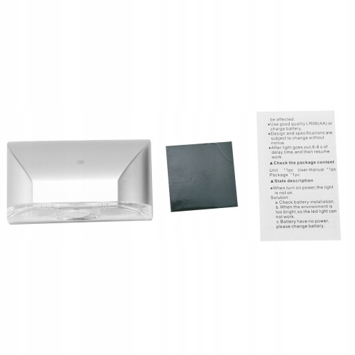 Lista pakietów:1 x światło dziurki od klucza (bateria nie dołączona) 1 x instrukcja obsługi
