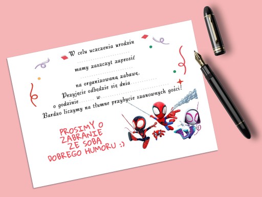 ZAPROSZENIE SPIDEY I SUPER-KUMPLE NA URODZINY DZIECKA + KOPERTA GRATIS