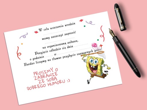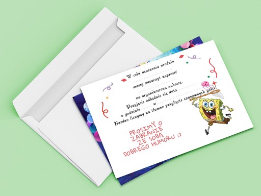 ZAPROSZENIE SPONGEBOB NA URODZINY DZIECKA + KOPERTA GRATIS