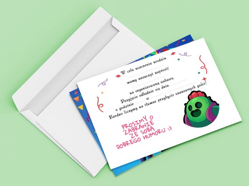 ZAPROSZENIE BRAWL STARS NA URODZINY DZIECKA + KOPERTA GRATIS