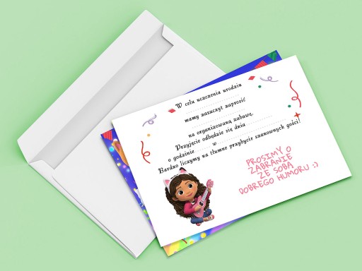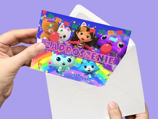 ZAPROSZENIE KOCI DOMEK GABI NA URODZINY DZIECKA + KOPERTA GRATIS