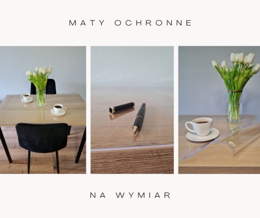 Nasza mata doskonale zabezpiecza powierzchnię przed uszkodzeniami. Wyprodukowana została z wysokiej jakości folii PCV, dlatego jej cechą charakterystyczną jest wysoka trwałość. Produkowana na wymiar, znakomicie dopasuje się do kształtu i wielkości Twojego blatu/stołu.