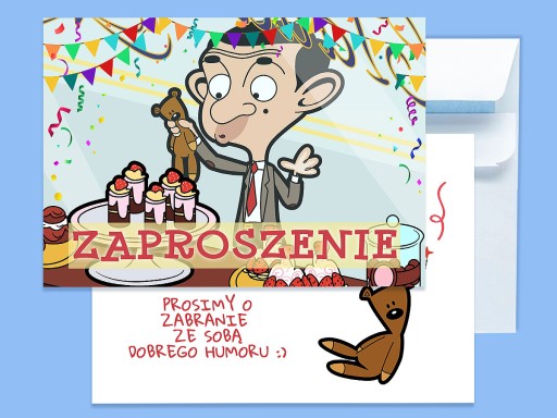 ZAPROSZENIE JAŚ FASOLA MR BEAN NA URODZINY DZIECKA + KOPERTA GRATIS