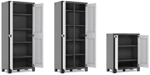 Szafa zawiera przestawne półki, które można ustawić tak, by zmieścić przedmioty różnych rozmiarów. Jest to gładki i nowoczesny mebel, zaprojektowany z dbałością o szczegóły, takie jak mocne uchwyty, podniesione nóżki i możliwość zamknięcia drzwi na klucz dla bezpieczeństwa. Za sprawą dużej wytrzymałości półek o maksymalnym obciążeniu 30 kg nazwa szafki Titan jest w pełni uzasadniona! Zastosowane materiały można w 100% poddać recyklingowi oraz są łatwe w utrzymaniu i czyszczeniu.