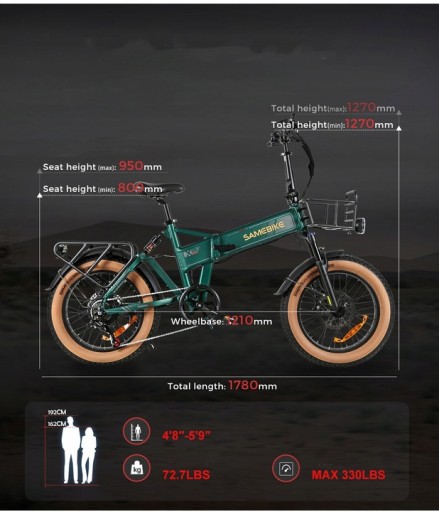 Składane aluminiowe nadwozie | Silnik o mocy szczytowej 1200 W | Wyjmowany akumulator 48 V 15 Ah | Podwójny hamulec tarczowy | Opony terenowe 20″ * 4,0″ | 7-biegowa przekładnia Shimano | Woodporny wyświetlacz LCD | Światła tylna | Reflektor LED | Podwójny system amortyzacji z przodu iz tyłu | Maksymalne obciążenie 150 kg | Z przednim koszem