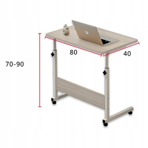 Mobilnytolikod ltop, tablet lub iążkęhyroduktu: - Gładki blat bez dodatkowh wgłębieńozwala ztosować go w wieluytujh -osiada kół, dziękizemuzybko iprawnie możnarzunąćtolik w dowolne mieje -rodukt doamodzielnego montażu - Blat z okleiny, rama z metalu Wymiary: - Wymiary blatu: 80 x 40m - Regulowana wokość blatu: 70-90m Uwaga: kolor blatów na zdjęcih dotzy tylko frontów, tył może być inny!rodukt zakowany wudełko o wymiarh: 46 x 85 x 6m