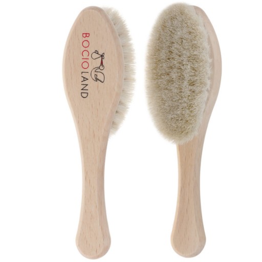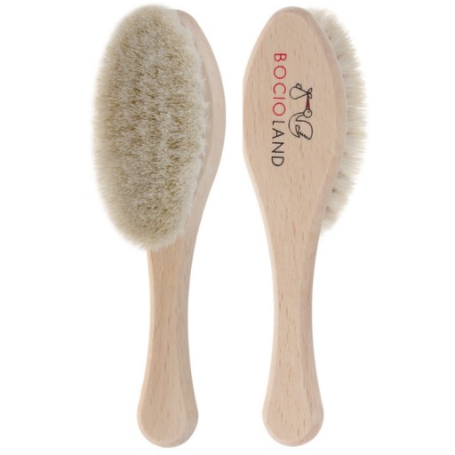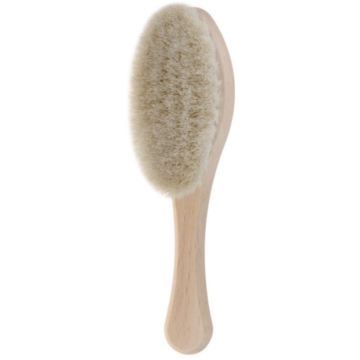 Wykonana z naturalnego koziego włosia z drewnianą ( drewno bukowe) rączką o kształcie elipsy. Rozmiar szczotki jest idealny do małej główki niemowlaka. Delikatne włosie jest idealne dla wrażliwej skóry, nie elektryzuje włosów. Masaż wykonany tą szczotką doskonale wycisza i relaksuje, jest przyjemny dla mamy i dziecka.