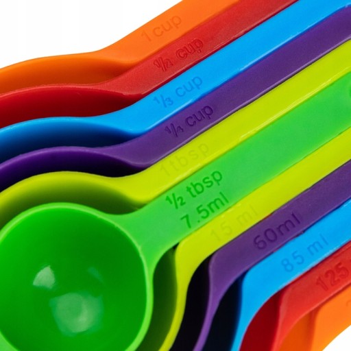Zestaw sześciu miarek kuchennych w formie plastikowych łyżek do odmierzania. Dzięki nim odpowiednio wymierzymy potrzebne składniki. Łyżeczki idealnie do siebie pasują rozmiarowo, dzięki czemu unikniemy zgubienia pojedynczych miarek. Możliwe jest również przechowywanie ich osobno. Wykonane z materiałów bezpiecznych dla zdrowia i neutralnych dla żywności.