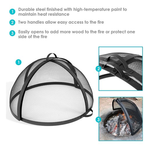 1. ŁATWY OBRÓT: Osłona przeciwiskrowa paleniska składa się z wielu metalowych siatek, które są połączone zawiasami i można je łatwo obracać i otwierać w celu dodania paliwa.