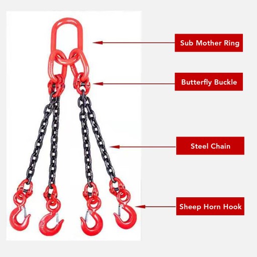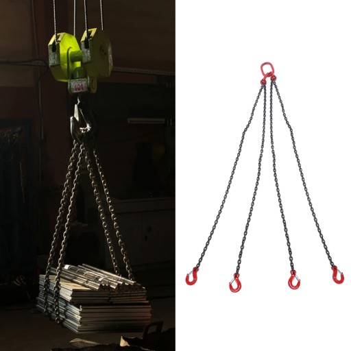 5. Łatwy w użyciu: To zawiesie łańcuchowe jest bardzo łatwe w użyciu, wystarczy zaczepić cztery haczyki do towaru i pierścień do ciągnięcia powyżej, aby umieścić je na dźwigu lub innej maszynie.