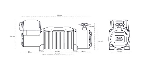 - Wymiary wyciągarki (LxWxH): 537 mm x 166 mm x 228
