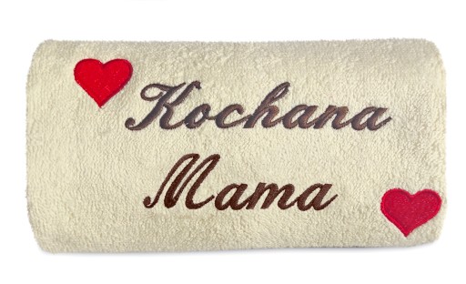 Przedmiotem sprzedaży jest ręcznik 1szt o rozm.70/140 z haftem Serduszka oraz napisem Kochana Mama lub Kochany Tata