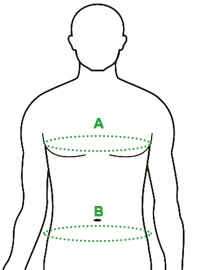 - A. Obwód klatki piersiowej - mierzymy obwód klatki piersiowej pod pachami, trzymając miarę na jednej wysokości.